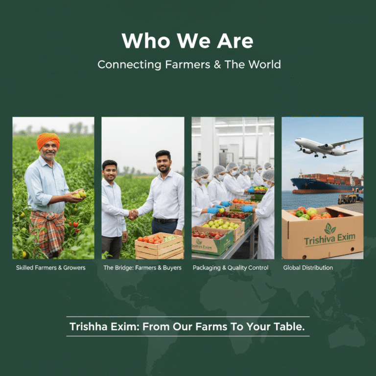 We work closely with skilled farmers and growers who share our dedication to producing high-quality, naturally cultivated fruits and vegetables. Acting as a bridge between farmers and international buyers, Trishiva Exim manages the entire supply chain—from sourcing and packaging to transport and global distribution.